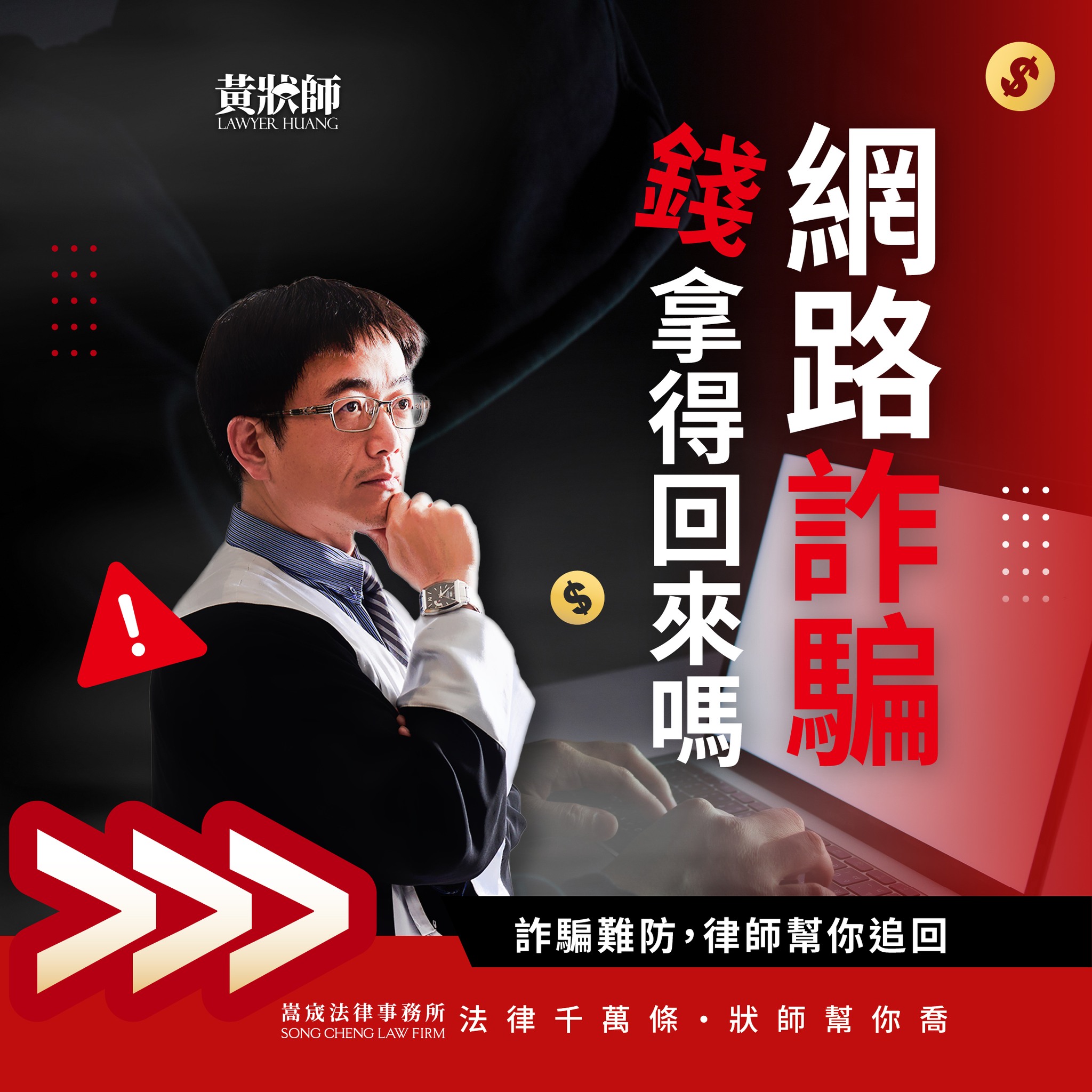 遇詐騙心慌慌,找黃狀師止損、止慌。